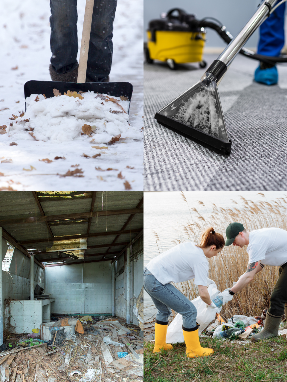 Elevate your space with our all-inclusive services, including carpet cleaning, post-construction cleanup, waste management, and snow removal. Your property, our priority.